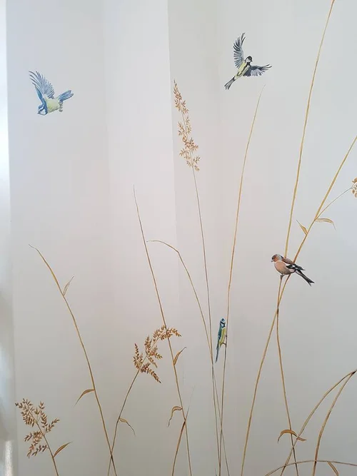 Inspired by one of my earlier murals my client asked me to paint long grass and song birds on the wall of their kitchen / dinning room in Fulham.