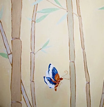 This mural is in a hallway in London. At one end is a tree with birds and pheasants and at the other, bamboo and butterflies. This was my first Chinoiserie and I spent a long time looking at fabric in the V&A trying to get the birds and insects right.